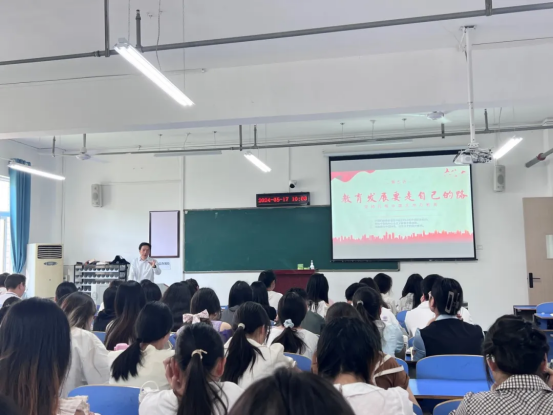 为进一步强化师范生的政治意识,提升师范生师德修养,5月17日,公司党委常委、纪委书记、监察专员刘玉松在崇文楼A406为外院学子讲授了一堂以“坚持扎根中国大地办教育”为主题的思政课。外院分党委书记夏金元、马院分党委书记王襄渝参与听课。刘玉松书记从“为什么”“怎么办”“办成怎样”三个层面加强同学们对中国教育的...