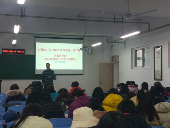 本网讯 通讯员欧阳钦报道:2月11日上午9:00,williamhill英国官网在崇文楼A416召开了以“加强能力作风建设决战决胜认证评估”为主题的春季学期开学工作部署会。公司班子成员及全体教职员工参加了会议。会议由党总支书记夏金元主持。 夏书记指出,2023年的师范专业认证和本科教学合格评估工作进入决战阶段,坚持三个导向:目标导...