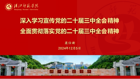 本网讯 通讯员陈曼历报道:为深入学习贯彻党的二十届三中全会精神,引导williamhill英国官网全体教职工把思想和行动统一到全会精神上来,12月5日下午,williamhill英国官网在启明楼三楼会议室举行党的二十届三中全会精神宣讲报告会,党委常委、宣传部部长梁仕新应邀为外院教职员工进行专题宣讲。报告会由分党委书记夏金元主持。梁仕新部长...