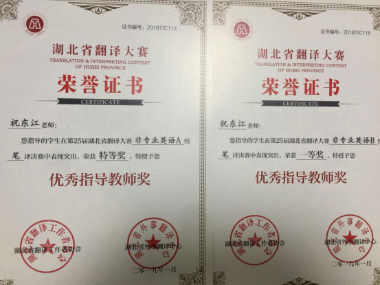 湖北省翻译大赛特等奖