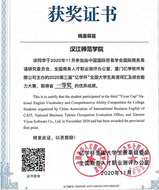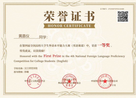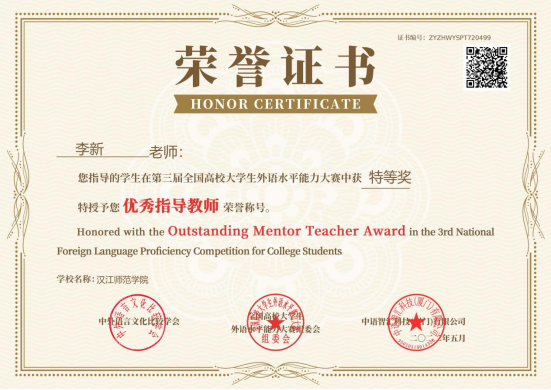 全国高校老员工外语水平能力大赛一等奖