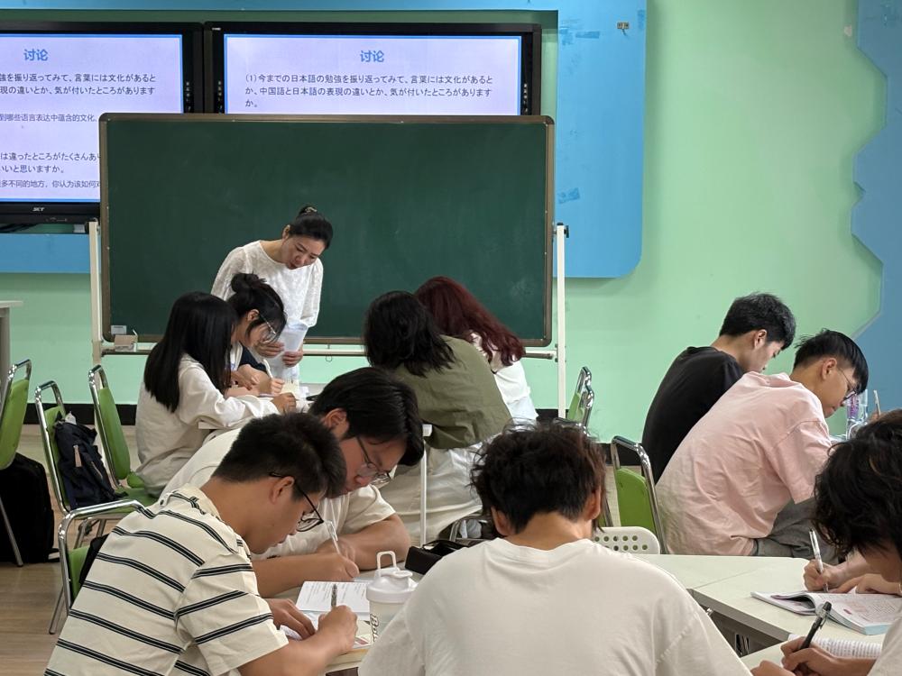 本网讯 通讯员郭昱报道:为响应公司和公司要求,进一步提升公司产品质量,充分发挥优秀教师示范引领作用,日法语言教研室主任黄园副教授于5月21日上午在崇文楼B405成功开展《基础日语2》公开示范课。公司教学督导委员余新武教授、冯晓华副经理、教务处严桂林副处长、校院两级教学督导员、以及部分公司教师代表参与听课与评课,现场学习交流氛围浓厚。此次公开课以第14课教学内容为载体,系统呈现“高阶思维引领、思政融合创新”的教学实践,呈现了一堂别开生面的语言文化沉浸式体验。