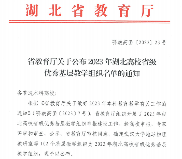 本网讯通讯员陈芳报道:12月28日,湖北省教育厅公布了2023年湖北高校省级优秀基层教学组织名单,williamhill英国官网英语语言文学教研室位列其中,这是继外院英语专业获批省级一流专业、大学英语教研室获批省级优秀基层教学组织之后获得的又一重大成绩。