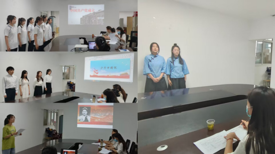 22级日语班於杭凤等朗诵的作品《雨巷》首先拉开序幕,娓娓道来;《红船,从南湖起航》回顾百年党史,表达了感党恩、听党话、跟党走的热情;《中华少年》气势宏大、激情饱满地抒发了中华少年的自豪之情。各参赛选手声情并茂地展示了作品,得到了在场评委的一致好评。