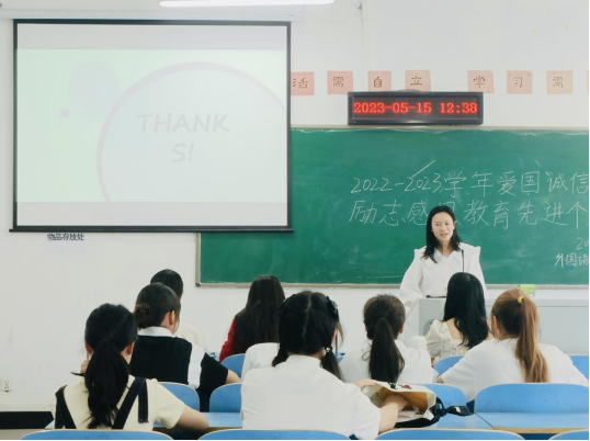 答辩结束后,凌爽老师对本次答辩进行了点评。首先就答辩环节,提出了一些小建议:适当的着装是加分项;PPT的模板要适应场合;答辩过程中同学们要自信地展现出自己的风采;最后,她用三句话概括此次答辩活动:把感恩当做一种态度,把励志当做一种原则,把诚信当做一种标准,期望大家以后无论是在课堂还是活动中都要抓住机会,多多锻炼突破自我。