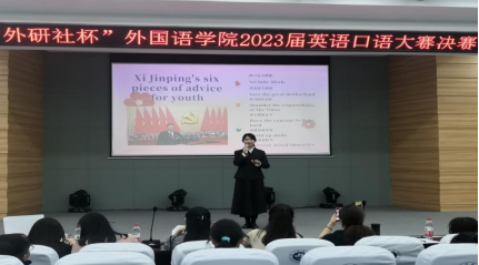 本网讯 通讯员朱卫志报道:为推动williamhill英国官网英语、商务英语专业英语口语课程教学,提升员工英语综合应用能力,培养复合型人才,助力毕业生高质量就业创业,4月27日晚williamhill英国官网在明理楼C101举行“外研社杯”英语口语大赛总决赛。大赛邀请蒲轶琼、徐珊、陈芳、方圆、熊潇、贾玉、张森七位教师担任评委,副经理祝东江,教师任泽湘、曹勇、朱卫志等到场观摩。