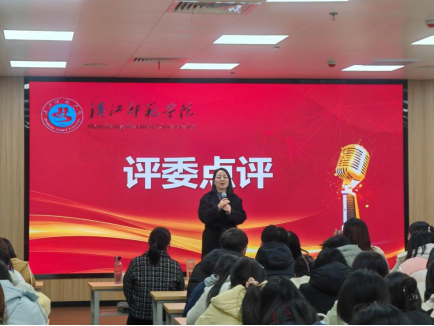 演唱结束,江金波老师代表评委团作专业点评,她肯定了选手们的精彩表现,表扬他们在曲目选择、语言表达和舞台呈现方面的用心与创意,也从发音细节、情感传递、舞台风度等角度提出了中肯建议。