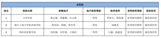 本网讯 通讯员陈曦报道:为深入贯彻党的二十大精神,落实立德树人根本任务,深化高校外语教育改革、提高外语人才自主培养质量,培养高水平国际传播人才,推进高水平对外开放,促进文明交流互鉴,2024一带一路暨金砖国家技能发展与技术创新大赛之外语职场综合技能应用(英语和日语)赛项决赛于2024年10月26日—27日通过线上线下混合的方式成功举办。商务英语2201班员工程芯洁、万良玉、唐依晨经过层层选拔,最终获得全国三等奖的好成绩。