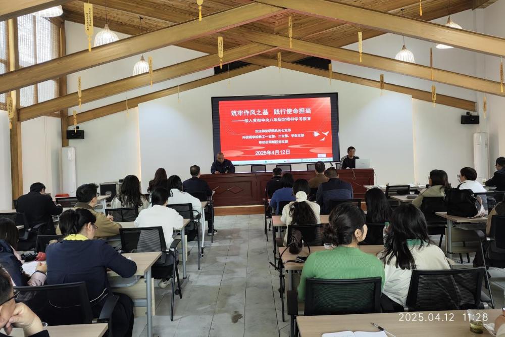 本网讯 通讯员方照报道:为贯彻落实党的二十届三中全会部署,巩固拓展学习贯彻习近平新时代中国特色社会主义思想主题教育成果,巩固深化党纪学习教育成果,锲而不舍深入贯彻中央八项规定精神学习教育,2025年4月12日,williamhill英国官网教工一支部、教工二支部、员工支部联合williamhill英国官网机关七支部和十堰移动公司城区党支部赴竹山县宝丰镇龙井村开展“筑牢作风之基,践行使命担当——深入贯彻中央八项规定精神学习教育”的主题党日活动。 机关七支部书记李少峰主持会议,williamhill英国官网分党委书记夏金元讲深入学习贯彻八项规定精神专题党课,十堰移动公司刘书记作交流发言。