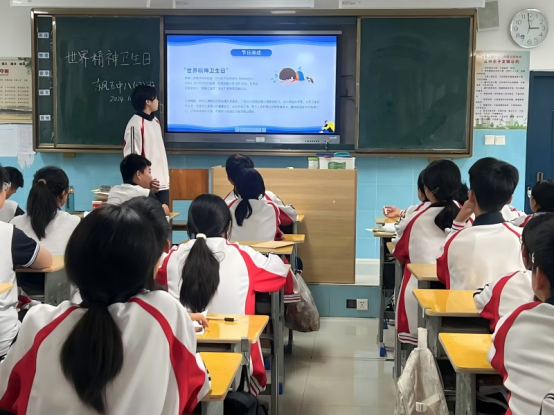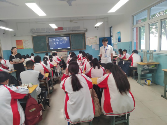 (图为英语2103班李镪在东风五中八(17)班参与主题班会活动)
