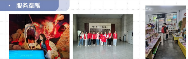 在努力提升自身的同时,她始终怀揣着一颗感恩之心,积极投身志愿服务活动,用行动践行社会责任。她多次参与公司的社会实践、十堰博物馆志愿讲解服务活动、一丢书屋、食堂文明就餐活动等。公司迎新期间,她热情地帮新生搬运行李,耐心解答新生和家长的疑问,让他们初入校园就感受到公司的关怀。作为一名生在红旗下、长在春风里的青年,她始终坚持冲锋在前,将小我青春融入中华民族伟大复兴的建设当中,献萤火微光筑万丈光芒,在热心公益中践行“纸上得来终觉浅,绝知此事要躬行”。