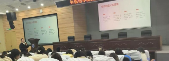 本网讯 通讯员张涵报道:为增强同学们的安全防范意识,在williamhill英国官网分党委书记夏金元的指导下,12月19日晚,williamhill英国官网防传销防电诈暨诚信应考主题教育大会在崇文楼C101召开,外院分党委副书记罗晓忆、辅导员张涵以及各年级员工代表参加。