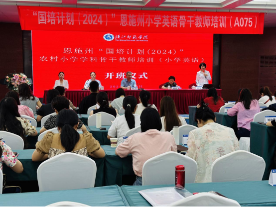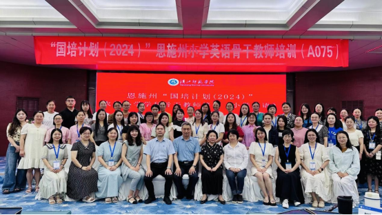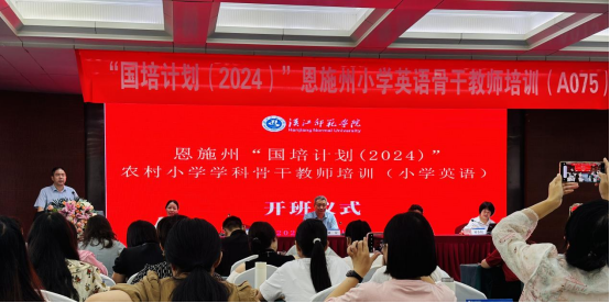 据悉,本次55名参训学员是来自恩施州各县市的小学英语骨干教师,将接受为期10天的集中培训。依据“需求导向、问题导向、目标导向”,本次培训项目邀请知名教育专家和一线教师授课,重点围绕职业信念与教育情怀、教学创新、信息素养、教学反思和教学研究等设计课程方案,旨在让学员真正训有所获、训有所用,打造市县小学英语骨干教师团队,引领恩施州县市教师专业发展和校本研修。