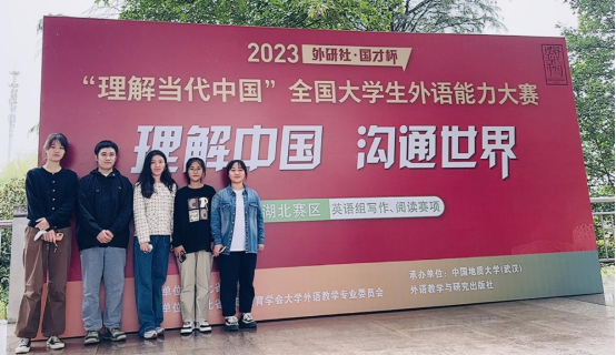 11月4日,2023年“外研社·国才杯”“理解当代中国”全国老员工外语能力大赛写作、阅读两大赛项湖北赛区决赛在中国地质大学(武汉)举行,来自全省高校400余名选手参加角逐。公司教师张森带领英语专业江南雪、徐黄珊、邓仁和商务英语专业万良玉等4位同学参赛。 在上午的写作大赛中,江南雪、邓仁同学就中国文化的传播方...