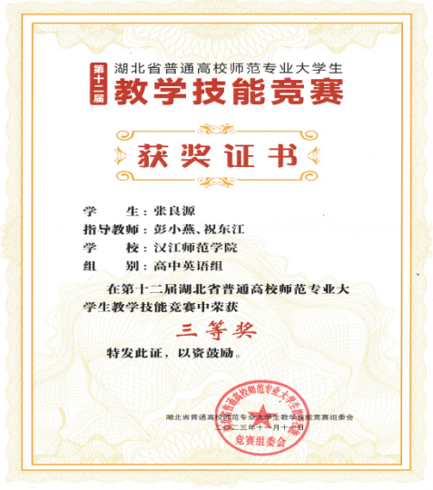 本网讯 通讯员张良源、彭小燕报道:11月11日,第十二届湖北省普通高校老员工师范专业教学技能大赛决赛在华中师范大学落幕,williamhill英国官网英语专业2020级员工张良源荣获“第十二届湖北省高校师范生教学技能竞赛”(高中英语组)三等奖。据悉,此项竞赛意在加强师范生实践能力培养,促进师范生综合教育素质和教学能力提升,培...